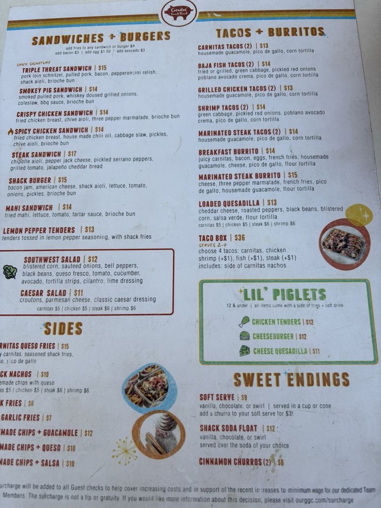 Introducing Carnitas Snack Shack - Embarcadero, a trendy and classy venue in San Diego offering a variety of delicious options. From Baja Fish Tacos to Breakfast Burritos and juicy Carnitas Tacos, their menu is a blend of flavors that will satisfy your cravings. The Shack Burger, Crispy Chicken Sandwich, and Smokey Pig Sandwich are perfect choices for those looking for a hearty meal. With a kids menu featuring Cheese Quesadillas and Chicken Tenders, this spot is also family-friendly. The ambiance is inviting with outdoor seating, an adjacent bar, and a fire pit area for colder evenings. Prices may be on the higher side due to the tourist location, but the quality of food and quick, friendly service make it worth it. Don't miss out on the great cocktails and craft beers offered here while enjoying the scenic views of the Embarcadero.